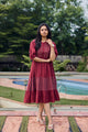 Sencei Maroon Cotton Tiered Midi Dress with Puff Sleeves